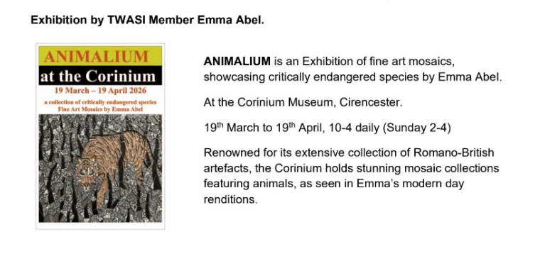 Any enquiries, or for Forms by post if required, please contact Bridget at: twasiart@gmail.com