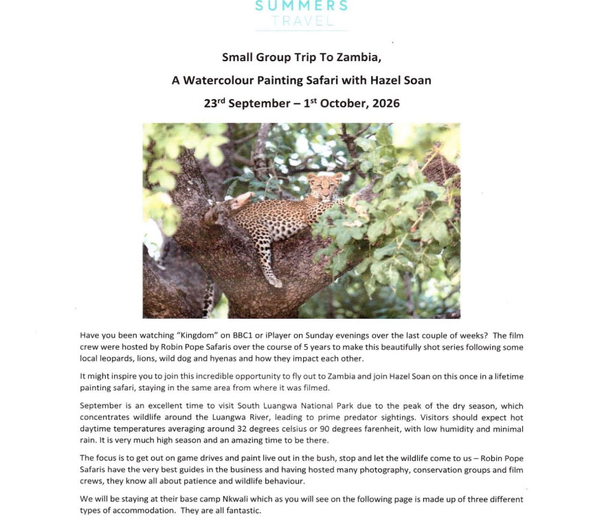Having been fortunate to have travelled to some beautiful and amazing countries, I have tried to absorb some the atmosphere, observe the special light and watch the animals that inhabit my paintings.